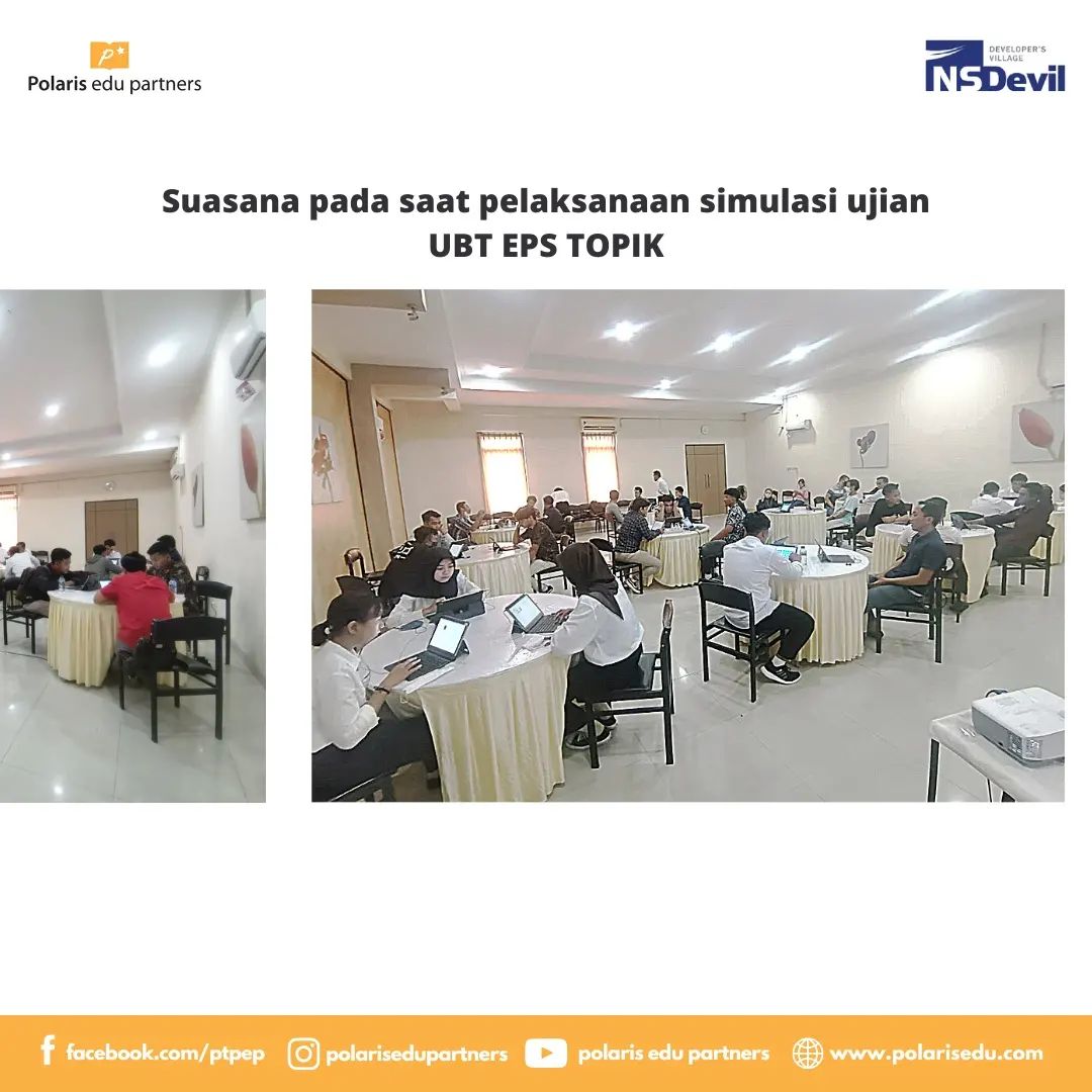 Kami PT. Polaris Edu Partners bersama NSDevil (North Star Developer's Village) membuat sebuah inovasi sistem pembelajaran yaitu UBT EPS TOPIK ,nantinya para peserta yang akan melakukan ujian EPS TOPIK dapat melakukan ujian try out terlebih dahulu agar para peserta ujian dari Indonesia dapat lulus ujian100%.Disana kami mengadakan simulasi penggunaan perangkat ujian UBT yang diikuti oleh beberapa pengajar